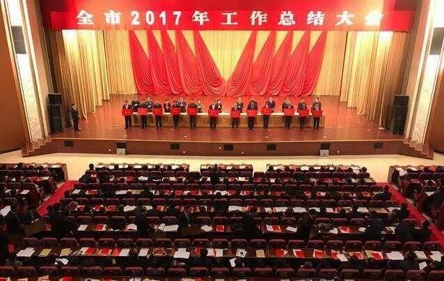 全市2017年工作总结大会在国际会展中心举行,市委副书记、市长张永霞出席并作重要讲话。大会对过去一年涌现出来的一批成绩突出的先进集体和先进个人给予表彰市领导为2017年度经济社会发展综合考核先进集体和先进个人代表颁奖,并兑现了制造业强市和创新驱动发展战略奖励政策。乐鱼电子集团有限公司被授予“经济发展功勋企业”,公司党委书记、董事长杨恒坤被授予“经济发展功勋个人”荣誉称号。