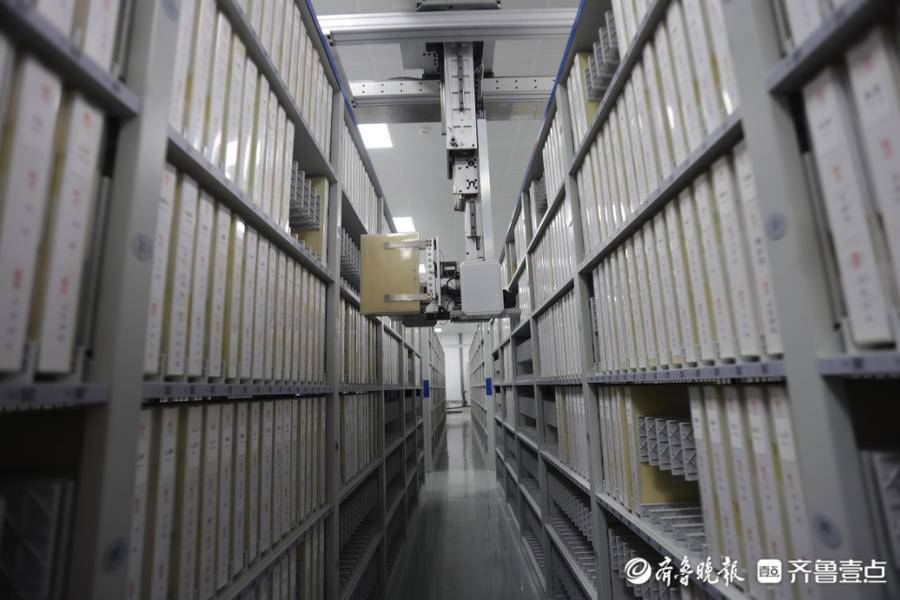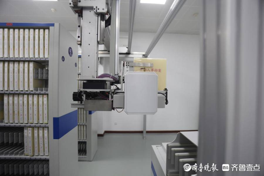在烟台,档案管理更先进、更智能,单卷档案从下指令到定位存取只需1.5分钟,这得益于烟台乐鱼瑞创达电子科技有限公司推出的最新产品——智能化无人档案库房项目。据悉,该产品是目前山东省首个天轨机械手抓取模式的无人智能库房。近日,记者走进这个“智能库房”,切身体验机械手智取档案的便捷与安全。
