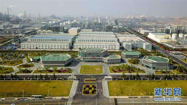 从空中俯瞰,万华烟台工业园中的一座座办公楼,形同一个个巨大的苯环分子结构。