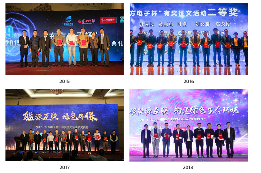 乐鱼电子联合中国电力传媒集团、英大传媒集团、中国电工技术学会电力系统控制与保护委员会,连续举办“乐鱼电子杯”有奖征文活动。十三年来,活动共收到文章1900余篇,其中获奖文章600余篇,部分优秀文章集结成册,出版了《迈向智能》和《能源互联》两本书籍。历年来,有奖征文活动的颁奖典礼与技术论坛同期举行,知名院士、电力专家、学者90余人出席活动并作专题报告,搭建了与客户沟通的平台。